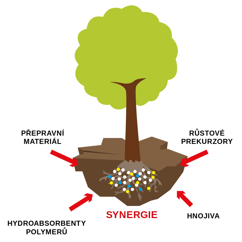 Tyto kořínky prorůstají polymery a snadno odebírají potřebné množství vody a živin. Růstové prekurzory hrají velmi důležitou roli zejména v počáteční fázi růstu rostliny. Tvoří pouhý zlomek produktu - přesněji 0,25 % - ale jsou vysoce účinné a pro růst rostlin klíčové! Stimulují prodlužování a diferenciaci kořenových buněk. Jinými slovy – rostliny vytvářejí kořeny delší, rychleji a je jich více. Čím větší a zdravější kořenový systém, tím větší a zdravější rostlina.