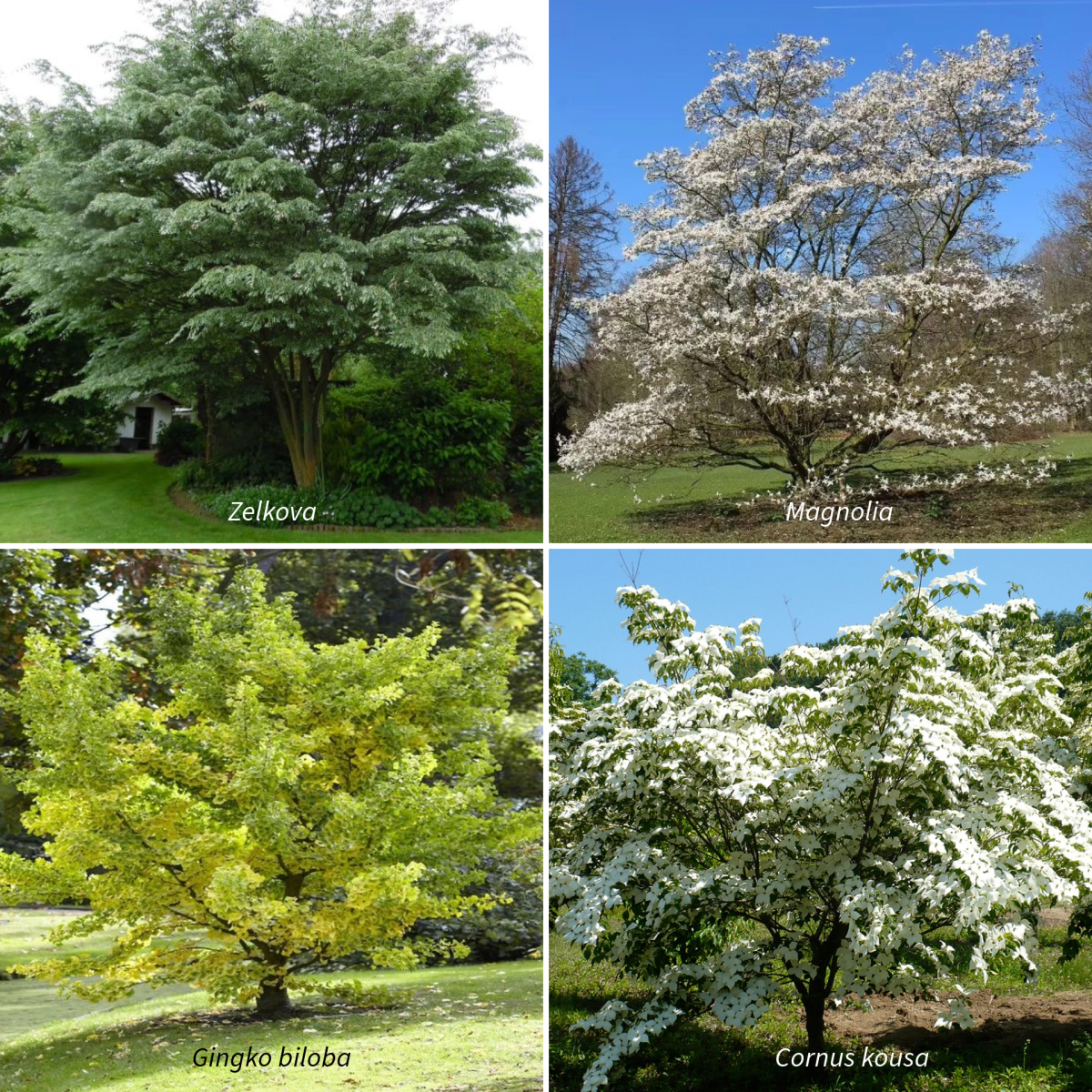 En ik ben enerzijds ook wel fan van de Gingko of Japanse notenboom. Ginkgo biloba eigenlijk. En anderzijds van de Cornus kousa (Japanse grootbloemige kornoelje).