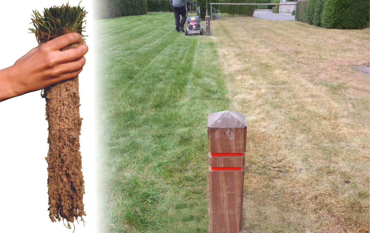 De zomer erop werd het echter extreem droog. Welk van de 2 gazons op de foto bevat TerraCottem, denk je?
